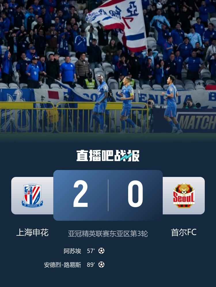 上海申花在亚冠赛事中迎来首场胜利 以两球击败首尔FC 阿苏埃和路易斯进球 薛庆浩表现出色多次扑救_亚冠杯直播免费