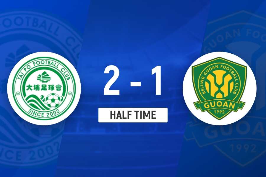 国安半场以1-2落后大埔 柏杨头球进球恩加德乌致命失误送礼张源送点_中超直播