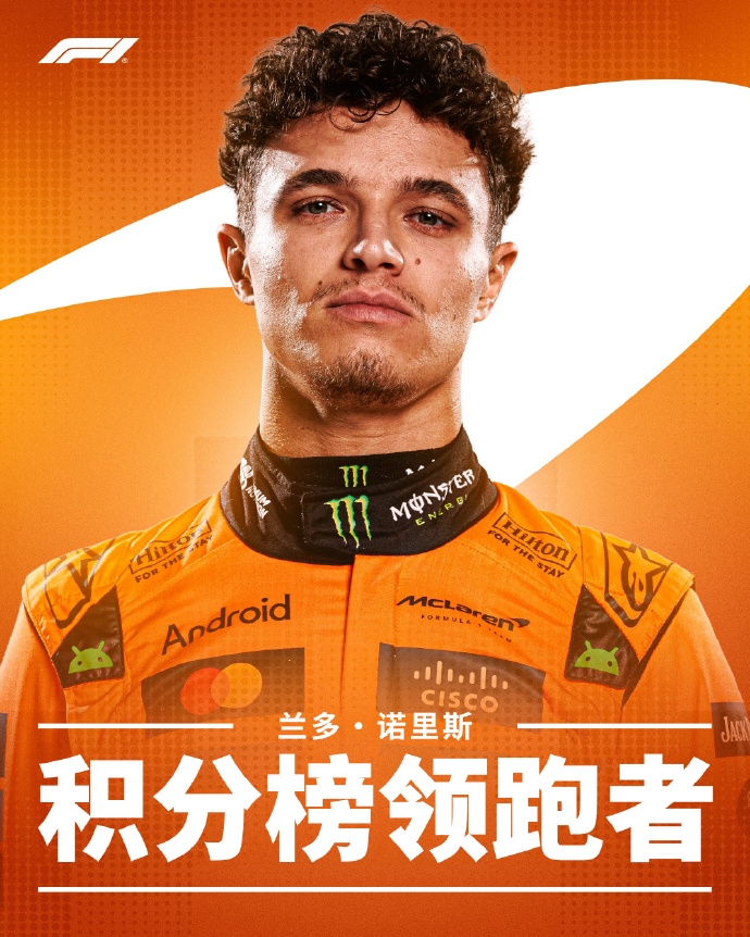 F1车手积分榜更新 诺里斯以1分优势登顶 维斯塔潘落后36分_F1直播