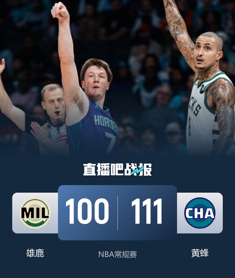 黄蜂战胜雄鹿 卡尔克布伦纳表现出色砍下17分9篮板3盖帽 字母哥缺席比赛_jrs直播nba(无插件)直播