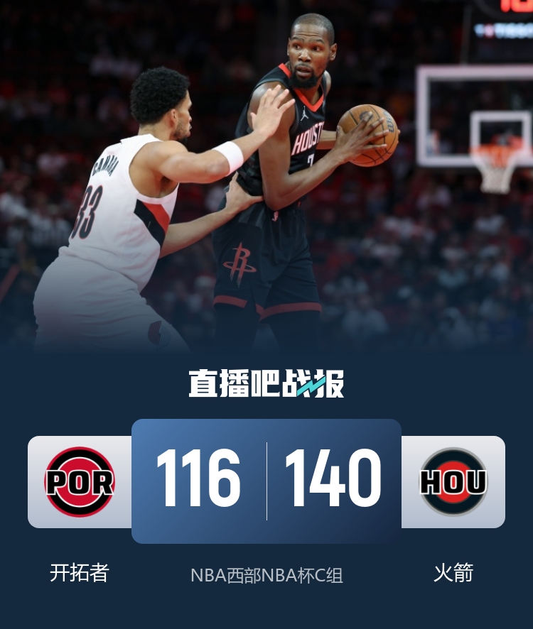 火箭三人得分超过20分大胜开拓者迎来杯赛首胜 KD拿下30分5篮板 申京贡献25分10篮板9助攻_nba直播