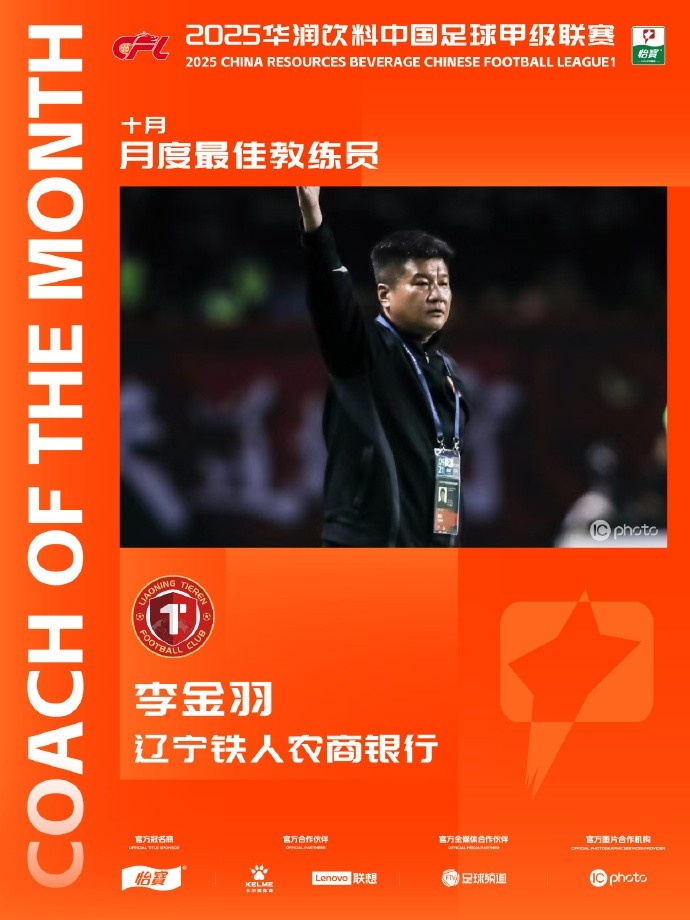 11月27日讯 辽宁铁人主帅李金羽在10月带领球队取得四场全胜的辉煌战绩,被评选为中甲联赛10月最佳教练。他率领的球队不仅在比赛中展现出强大的实力,攻入8球且只丢掉1球,成为10月中甲唯一全胜的队伍。