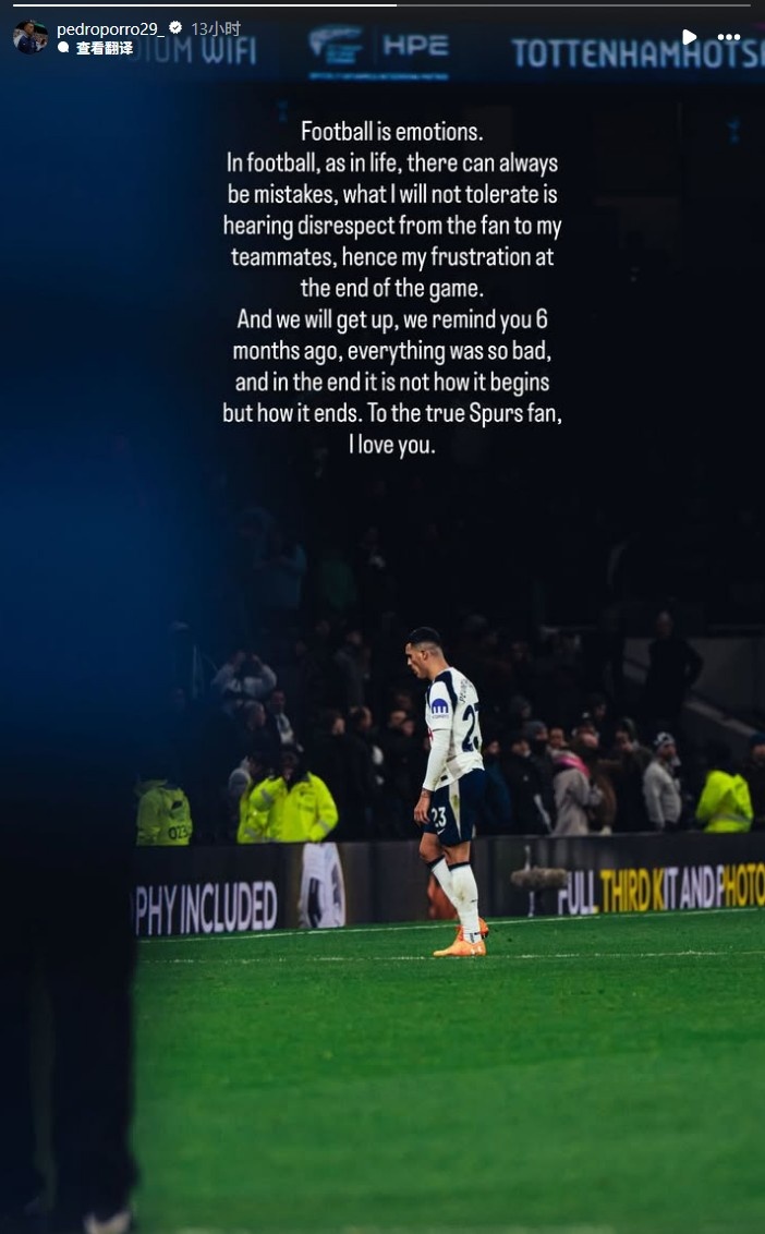 12月1日的消息,热刺的年轻边后卫佩德罗·波罗在社交平台上发声,回应了外界对他最近表现的质疑。在与富勒姆的较量中,波罗因与年轻队友贝里瓦尔之间的争执而引发了广泛的讨论,赛后他无视球迷的声音,径直走向更衣室,这一举动让他遭到了不少批评。