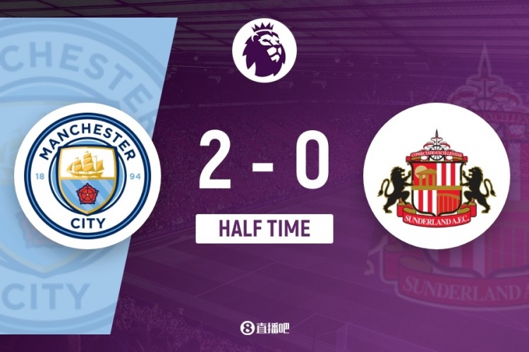 补时阶段为3分钟,上半场结束,曼城以2-0暂时领先桑德兰。