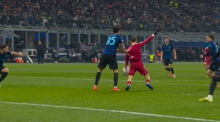 然而,下半场的争议仍在持续。在第39分钟,小图拉姆的一脚劲射被范戴克的手臂拦截,这一动作引发了一个问题:自然的身体动作是否构成犯规?在这一点上,裁判似乎并没有对此进行纠结,且观念上给予了相对宽松的解释。