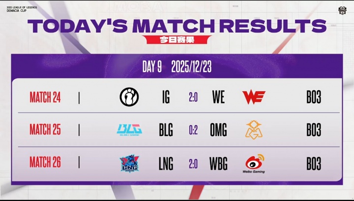 德玛西亚杯今日比赛结果:BLG意外失利降至第三,LNG和OMG暂时占据B组前两名_LPL直播