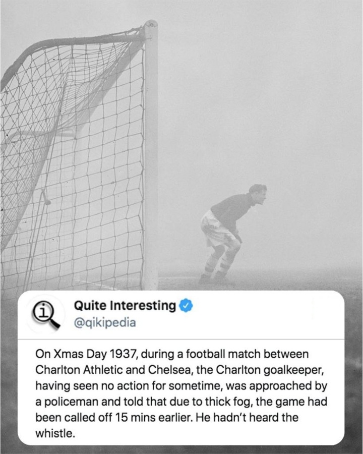 在这个特别的日子里,查尔顿的门将巴特拉姆却全然不知。浓雾使他在门前如同孤岛,视野完全被遮蔽。他以为比赛仍在如火如荼地进行,始终保持高度的警惕,盯着可能出现的险情。直到一名前来关场的警察靠近,传来“比赛早已中止”的消息时,巴特拉姆才意识到,原来自己在这片雾海中独自守望,身边的队友早已隐去无踪。