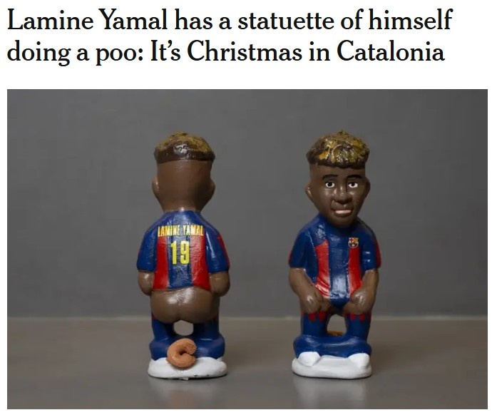 12月26日讯,本周巴萨球员亚马尔在其YouTube频道上发布了首个视频,带观众参观自己的家。其中,他展示了一个颇具特色的手办,令人瞩目的是它表现了自己这一形象,正在蹲着排便。