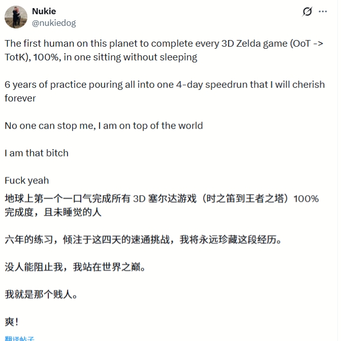 12月27日消息,美国著名的速通玩家与主播Nukie创造了一项令人瞩目的记录:在近90个小时的征战中,她毫不停歇,秉承着不眠不休的决心,成功以100%的完成度通关了所有“三维塞尔达”系列的作品。这一挑战被称为“3D Zelda Challenge”,无疑是对玩家意志力与技术的严峻考验。