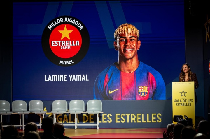 在加泰罗尼亚的足球舞台上,发生了一场盛大的庆典。12月30日,令人振奋的消息传来,年轻的天才球员拉明·亚马尔在第十三届“明日之星”颁奖礼上荣获了加泰罗尼亚最佳球员的殊荣。他的前辈达尼·奥尔莫则光荣地将这一奖项的桂冠传递给了他,而亚马尔由于某种原因未能亲自出席,领奖的任务则由巴萨的传奇球员博扬代为完成。