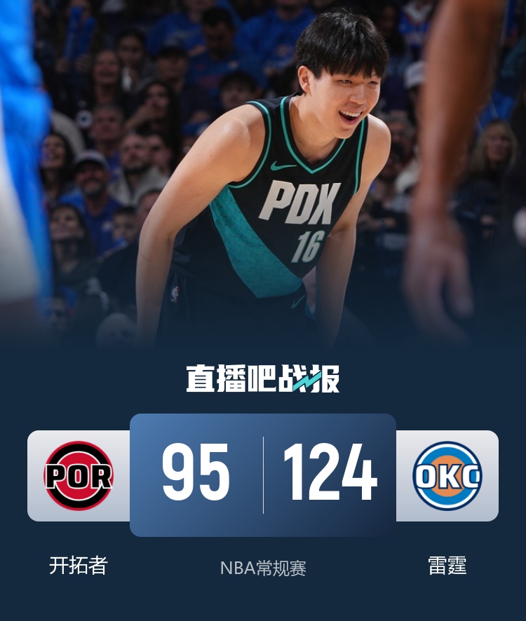 杨瀚森火力全开雷霆轻取开拓者 SGA砍下超30 霍姆格伦双十表现精彩_NBA直播