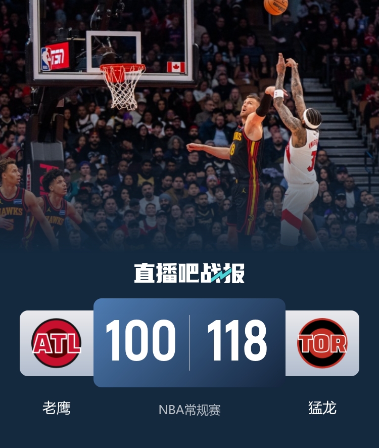 猛龙七人得分上双击败老鹰 莺歌贡献19分9篮板 巴恩斯斩获18分8篮板10助攻 约翰逊拿下13分14篮板7助攻_NBA直播