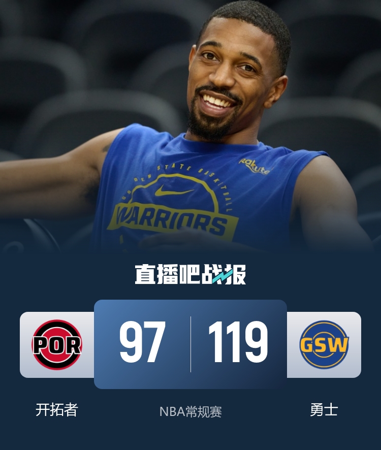 下半场比赛开始后,开拓者逐渐找到进攻节奏,努力缩小分差。然而,勇士始终保持着对比赛的掌控,杨瀚森在底角投中三分球,继续稳住局势。第三节结束时,勇士仍然领先24分。在最后一节开始不久,杨瀚森在一次冲撞中受了轻伤,暂时退场,但很快又重返赛场。开拓者未能在关键时刻形成追分势头,勇士最终以119-97的比分大胜对手。