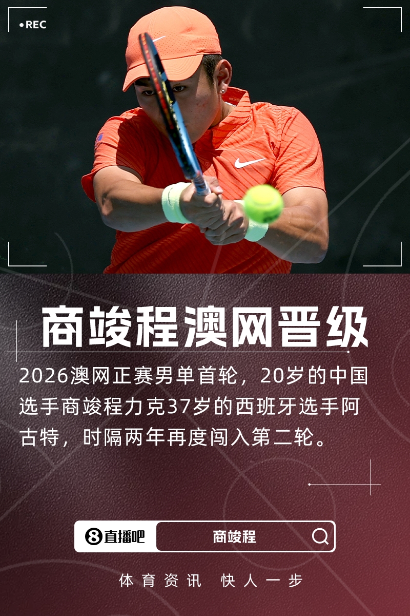 20岁的小将商竣程在第四盘打出了惊人表现以3-1战胜37岁的老将阿古特 时隔两年再次踏入澳网次轮_澳网直播