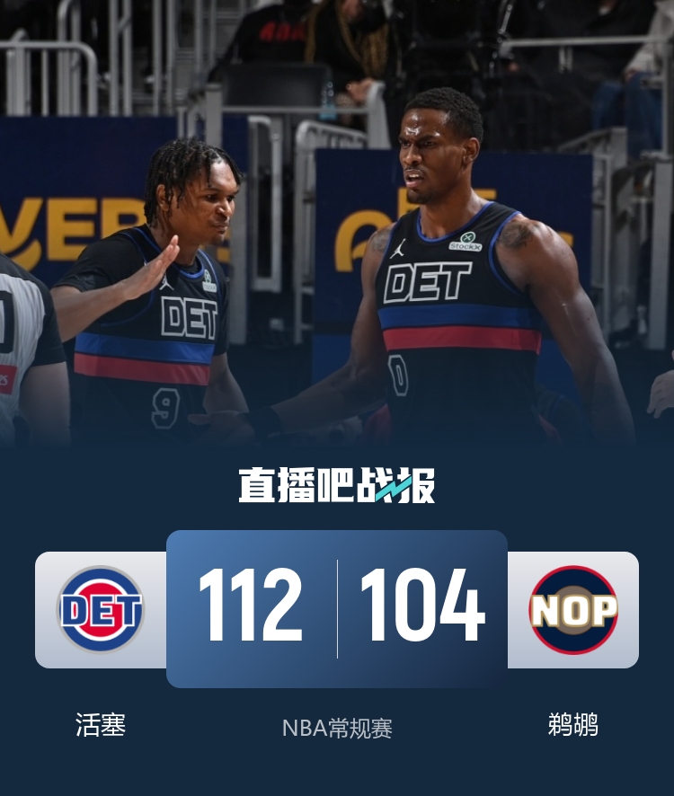 活塞战胜鹈鹕 坎宁安缺阵 杜伦斩获20分15篮板 墨菲19投6中 普尔17投4中_NBA直播