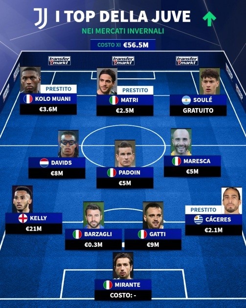 1月26日讯 转会市场网选出的尤文图斯历史最佳和最差冬季引援阵容,似乎让人感叹:什么叫做实力和无奈的真实写照。最佳阵容由巴尔扎利一人扛起,他在2011年以30万欧元的“白菜价”迅速入驻,这一成就足以让尤文的管理层在夜里梦到笑醒。想想看,这位意大利后卫不仅在俱乐部表现出色,还成为了国家队的防线核心,直到2019年退役,成功与否显而易见。