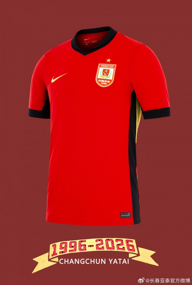 长春亚泰队真是个令人啧啧称奇的存在,居然在2026赛季推出了主场新球衣,居然还有30周年独特的庆祝概念!看看这设计,金色点缀显得多么“金碧辉煌”,从侧边线到胸口的Swoosh,似乎在告诉所有人,他们是多么自信,仿佛这就是足球界的“贵族”席位。