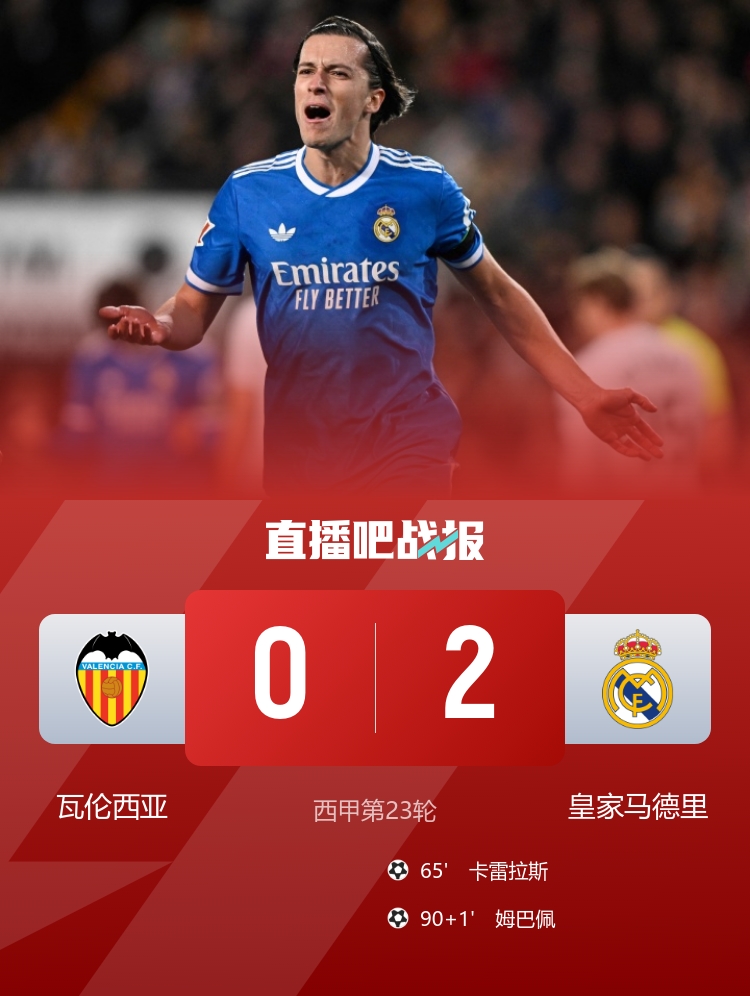 而在比赛进入补时阶段时,赫伊森给了姆巴佩一个“红包”,他在无人盯防的情况下轻松推射得手,将比分锁定为2-0。仗着姆巴佩的个人能力,皇马在这场比赛中如同在和小朋友玩“猫捉老鼠”。瓦伦西亚面对如此强敌,似乎只能任人摆布,无奈地望向了更深水区的降级之路。