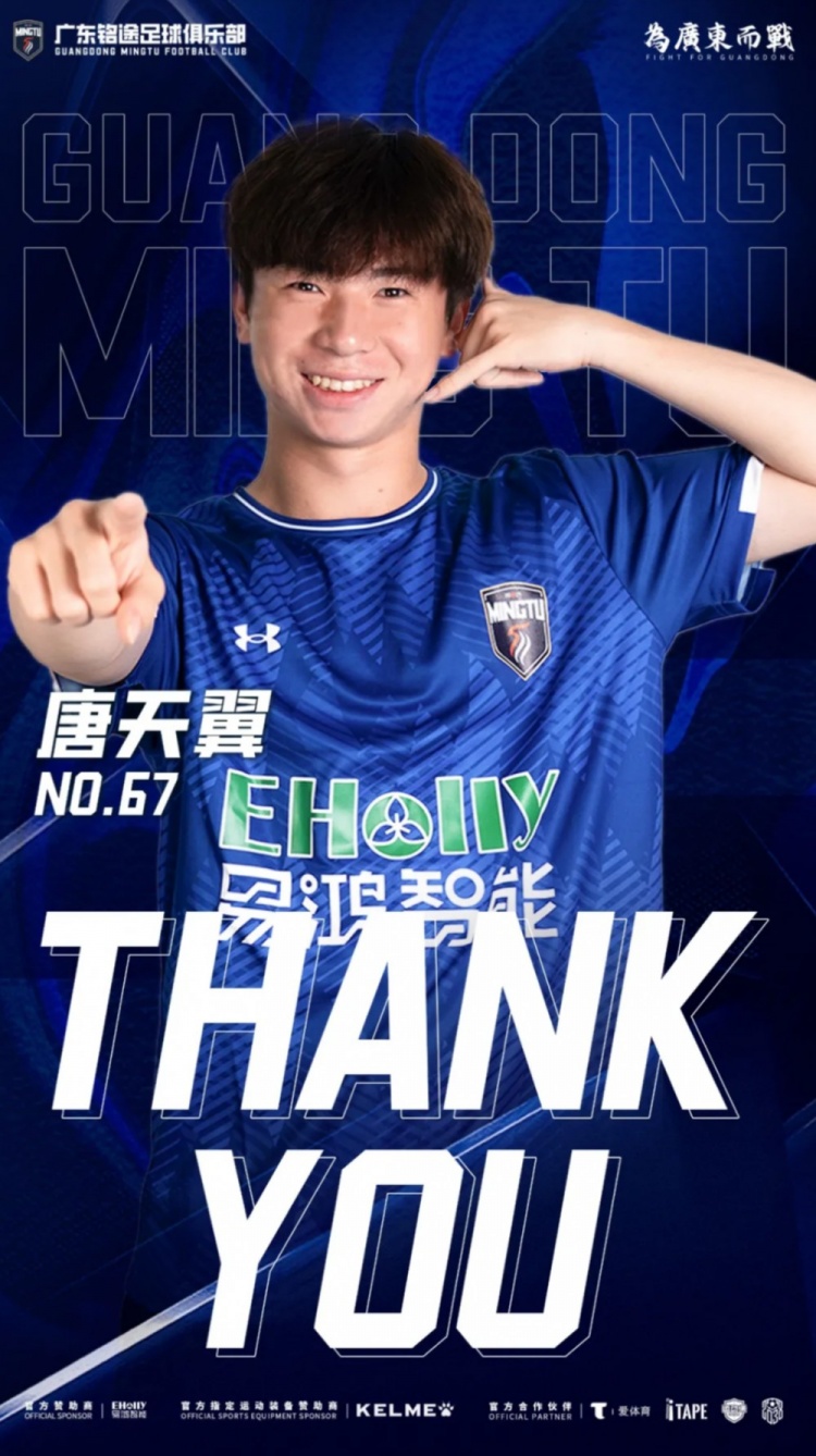 广东铭途感谢唐天翼 尊重与支持他的选择 祝愿他未来取得更大进步_中甲直播