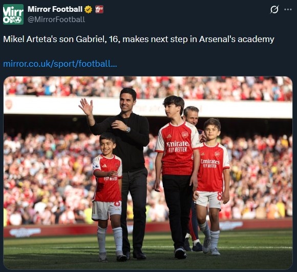 加布里埃尔出生于2009年,那时阿尔特塔正效力于埃弗顿,但他的大部分成长过程是在北伦敦度过的。对于阿森纳的训练基地,他并不陌生,甚至在2023年时以教练组助理的身份随队前往美国进行季前赛,积累了一定的经验。