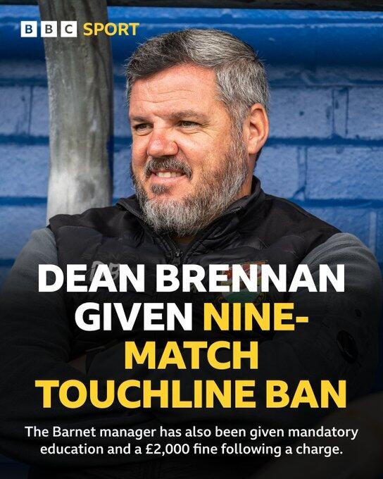 自2021年9月掌舵巴尼特俱乐部以来,布伦南带领球队成功晋级,回到了英格兰职业足球的舞台。然而,随着这次禁赛的判决,他将无法在即将到来的主场赛事中指挥球队,直到3月28日与剑桥联的对决。