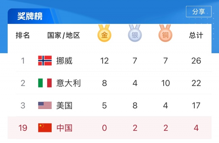 截至今天,米兰冬奥会的第九个比赛日已经结束,而我们的中国队的闪耀之路似乎并没有如预期般辉煌,依旧停留在了2银2铜的窘迫位置,排名沦落至第19位。看看赛场上的“强国”,挪威已经有了12枚金牌,简直就是在抢金,而我们则是努力搬砖,收获的奖牌数量寥寥可怜。