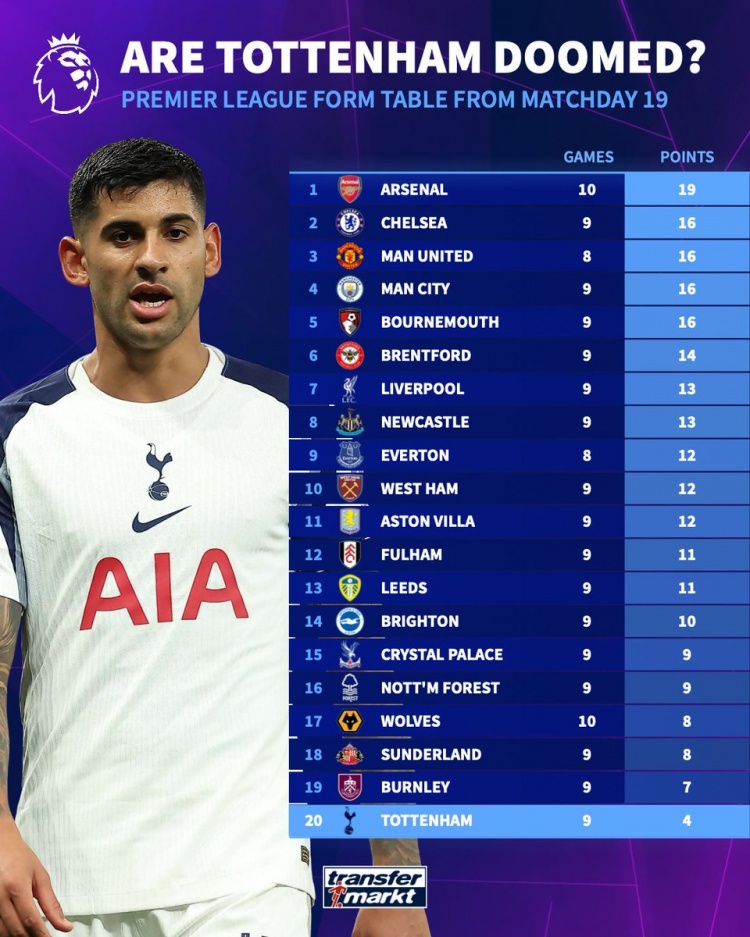 看来英超的战斗真的是一场“荣誉之争”,不过荣誉似乎只属于那些有真实实力的球队。阿森纳在第19轮以来豪取19分,简直就像在全明星赛上横扫一群菜鸟,真是个绝对的赢家。而热刺呢,他们只拿到可怜的4分,简直是在赛季的垫底群体中扮演着笑话的角色,难道他们是为了给其他球队增加点自信心吗?