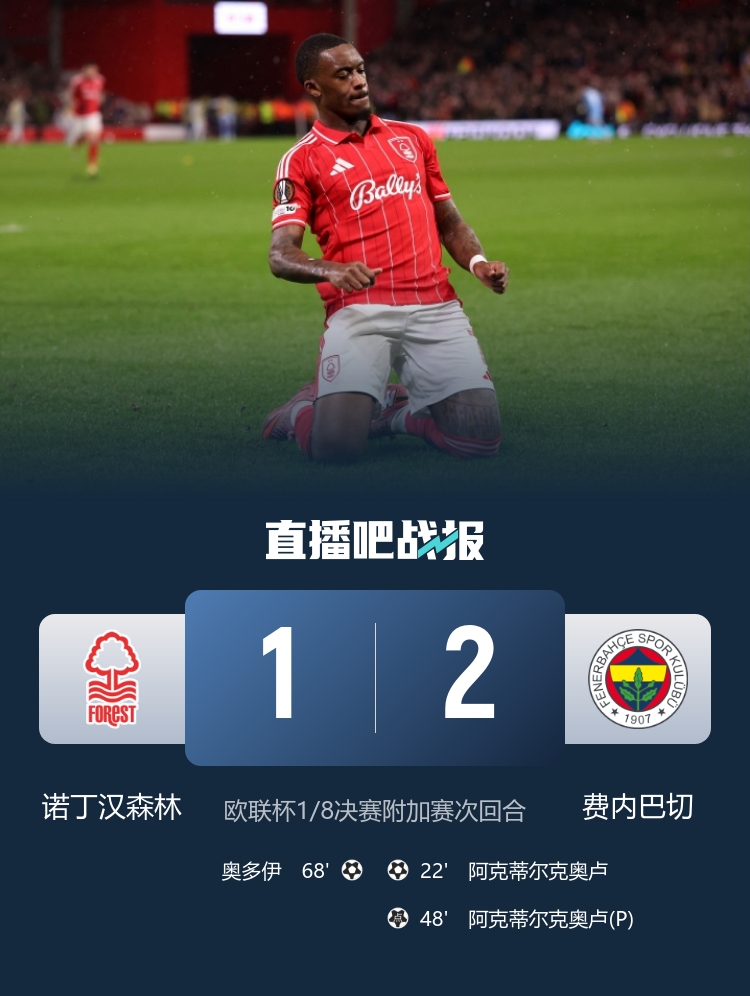 森林队勇夺欧联十六强 阿克蒂尔克奥卢双枪齐发力战胜费内巴切_欧联杯直播