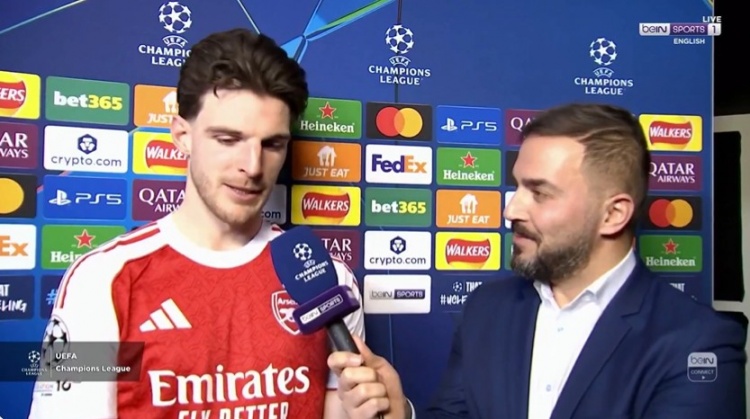 3月18日讯,今天凌晨,欧冠1/8决赛的第二回合,阿森纳凭借2-0的胜利战胜了勒沃库森,最终以总比分3-1顺利晋级。赛后,中场球员赖斯接受了记者的采访。