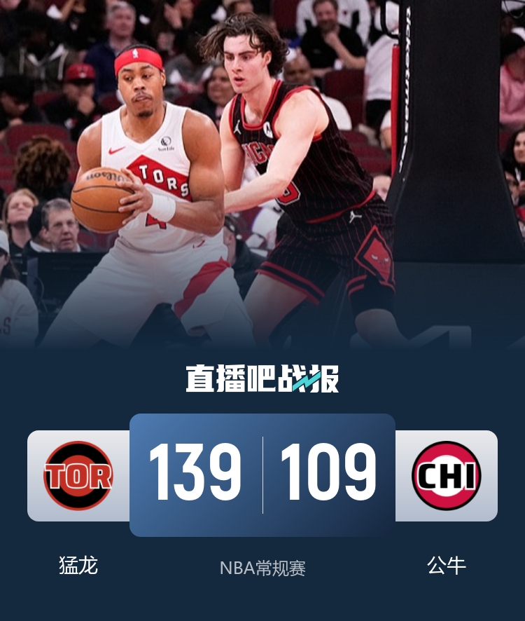 猛龙挥洒自如轻松战胜公牛 巴雷特拿下23分 英格拉姆贡献18分5篮板 布泽利斯斩获19分7助攻_NBA直播