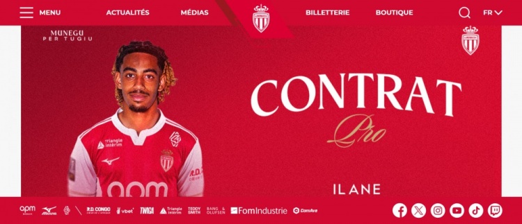 摩纳哥官方宣布与十九岁青训新星伊莱恩图雷正式签约_法甲直播