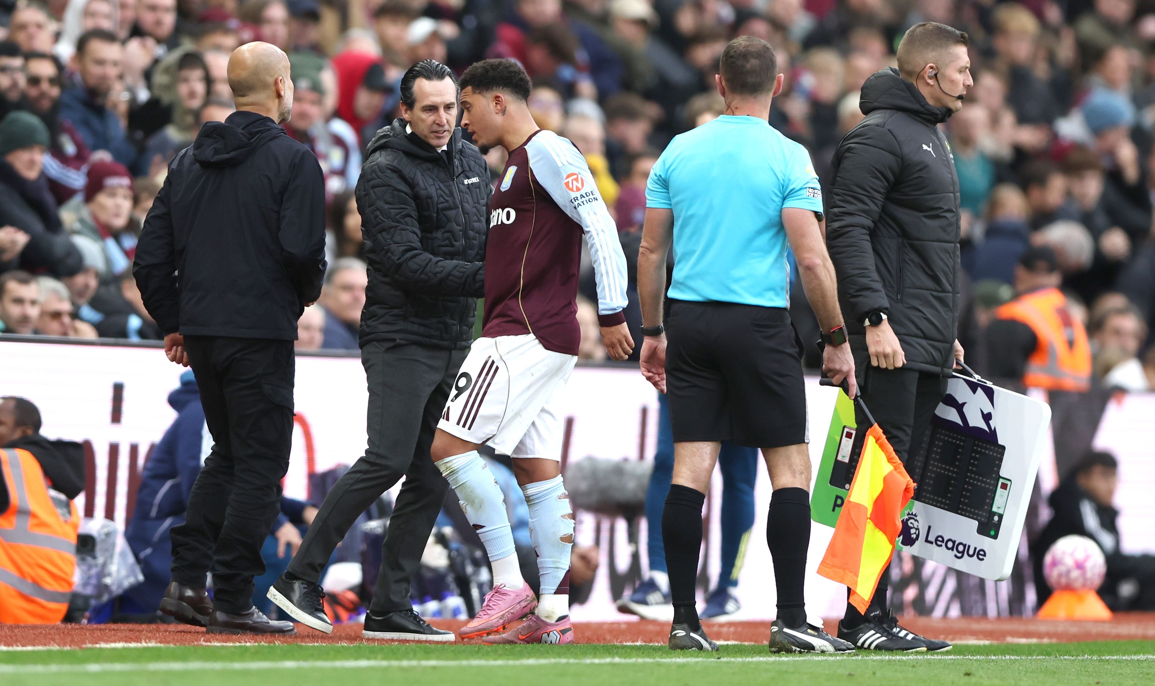 在10月27日的英超第9轮比赛中,阿斯顿维拉在主场以1-0小胜曼城。这场比赛中,桑乔在第29分钟替补上场,接替因伤退场的布恩迪亚,而在第74分钟又被换下。这是桑乔职业生涯中首次在英超的比赛中经历了“被换上又换下”的情况。