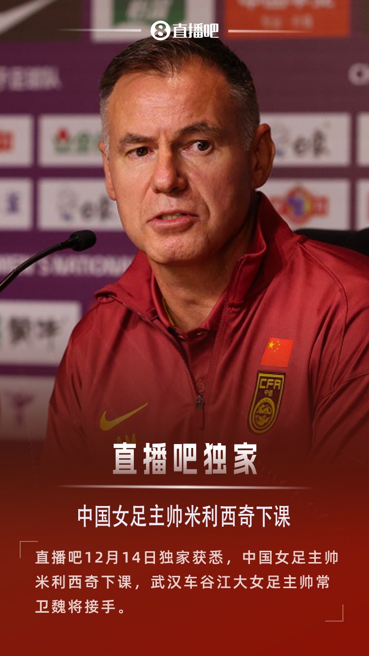中国女足主帅米利西奇离职,武汉女足主帅常卫魏接任_中超直播