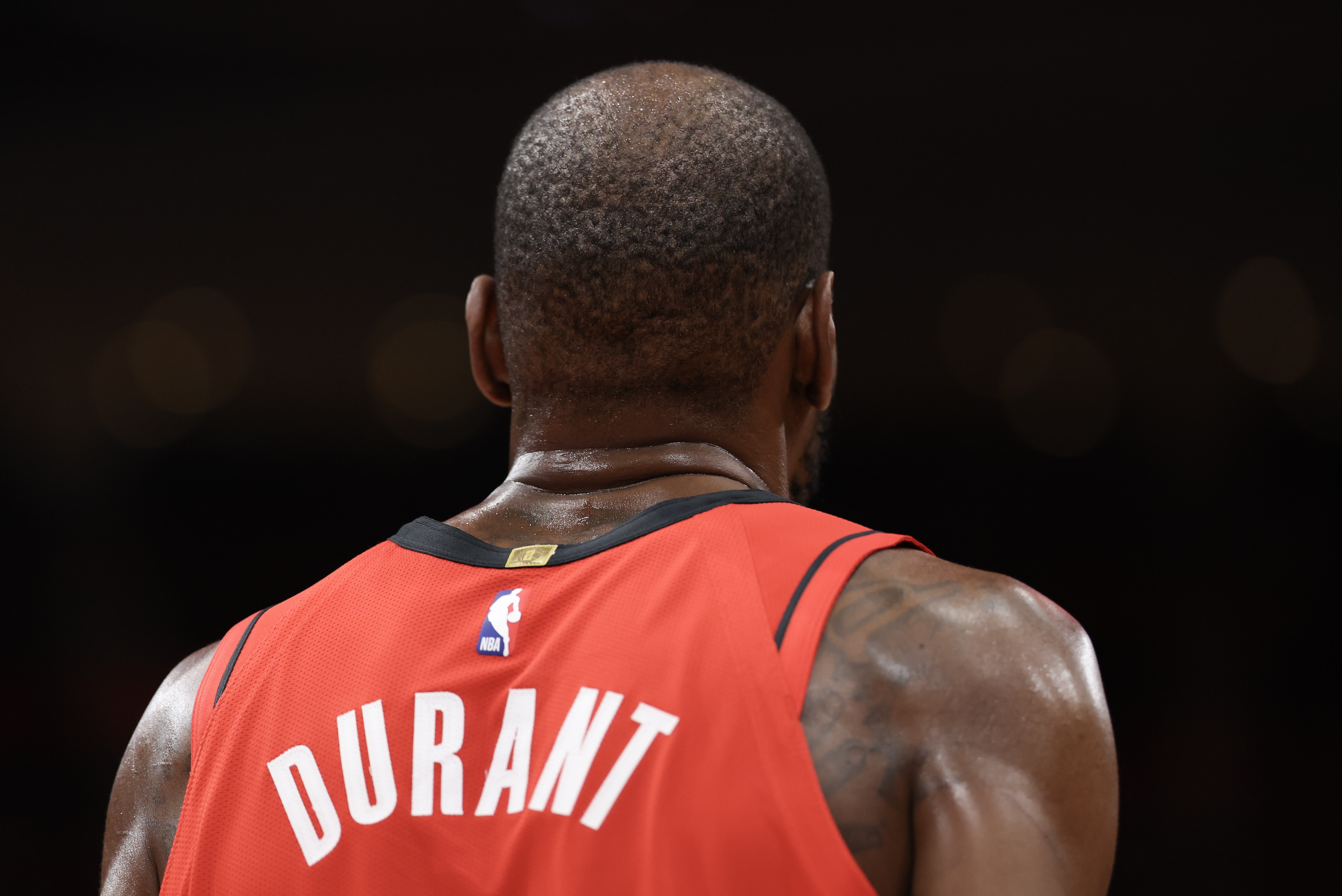 1月21日讯 在NBA常规赛中,休斯顿火箭以111-106逆转战胜圣安东尼奥马刺,赛后凯文·杜兰特接受了媒体采访。