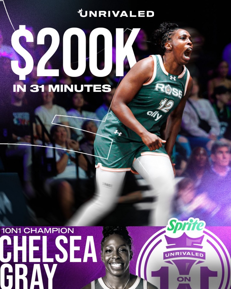 切尔西格雷夺得Unrivaled单挑冠军 奖金20万美元仅用31分钟完成四场比赛_WNBA直播